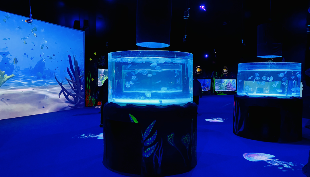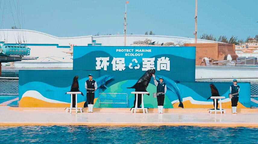 白鲸秘境、未来海洋馆、海龟湾、海豹湾、海狗湾、极地岛(海狮、北极狼)。