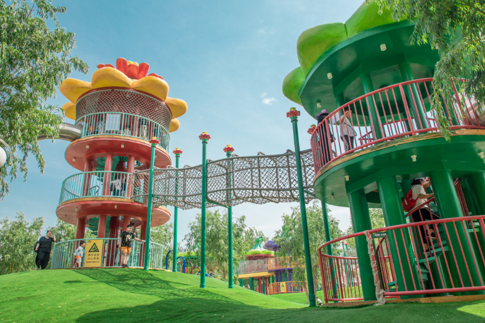 从进园开始,精神堡垒及周边花坛、探险部落、滑草场··· ···走一路,气球就会伴随你一路哦!